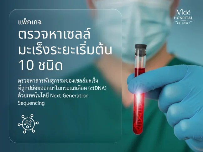 รู้ก่อน ป้องกันได้ ด้วยเทคโนโลยีตรวจหาความเสี่ยงโรคมะเร็งระยะเริ่มต้น ครอบคลุม 10 ชนิด ก้าวใหม่ของการดูแลสุขภาพเชิงรุกด้วยเทคโนโลยี Next-Generation Sequencing (NGS) ที่วิเคราะห์สารพันธุกรรมของเซลล์มะเร็งในกระแสเลือด (Circulating Tumor DNA: ctDNA) เจาะเลือดเพียงครั้งเดียว ก็สามารถตรวจหามะเร็งหลายชนิดพร้อมกันได้ถึง 10 ชนิด แม้ไม่ใช่กลุ่มเสี่ยง