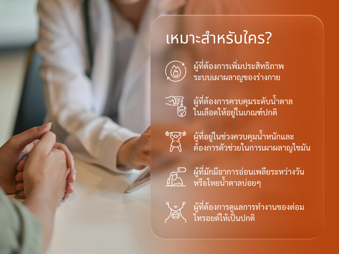 • ผู้ที่ต้องการเพิ่มประสิทธิภาพระบบเผาผลาญของร่างกาย