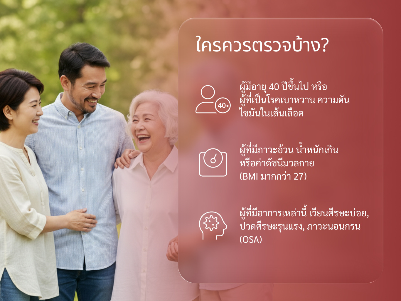 - มีอาการเหล่านี้ เวียนศีรษะบ่อย, ปวดศีรษะรุนแรง, ภาวะนอนกรน (OSA)